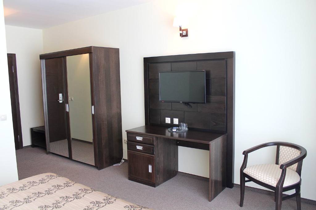 Площадь номера - 21 кв.м. 2 осн. места. 1 доп. место. Мебель: вешалка, зеркало, кровать двуспальная, прикроватные тумбочки, столик туалетный, стулья, шкаф-купе. Оборудование: мини-холодильник, телевизор ЖК. Санузел: с душевой кабиной, туалетные принадлежности. Сервис: смена полотенец, смена постельного белья, уборка номера.
