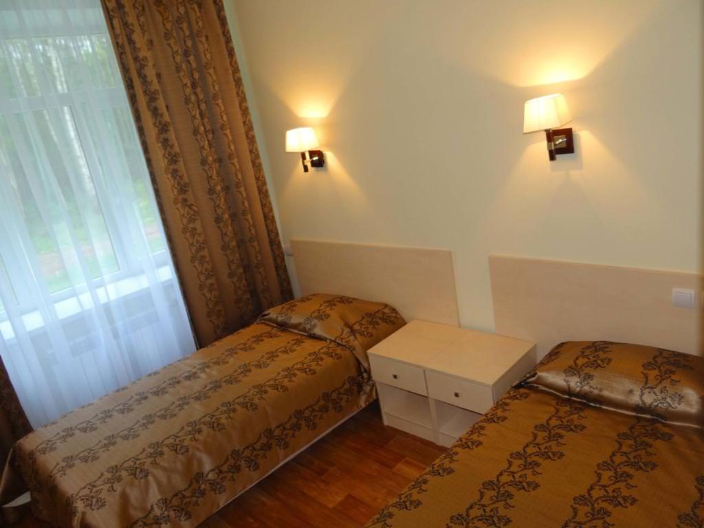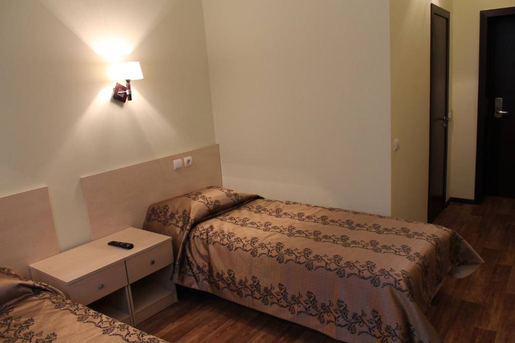 Площадь номера - 13 кв.м кв.м. 2 осн. места. Мебель: вешалка, зеркало, кровати односпальные, прикроватные тумбочки, шкаф. Оборудование. Санузел: с душевой кабиной, туалетные принадлежности. Сервис: смена полотенец, смена постельного белья, уборка номера.