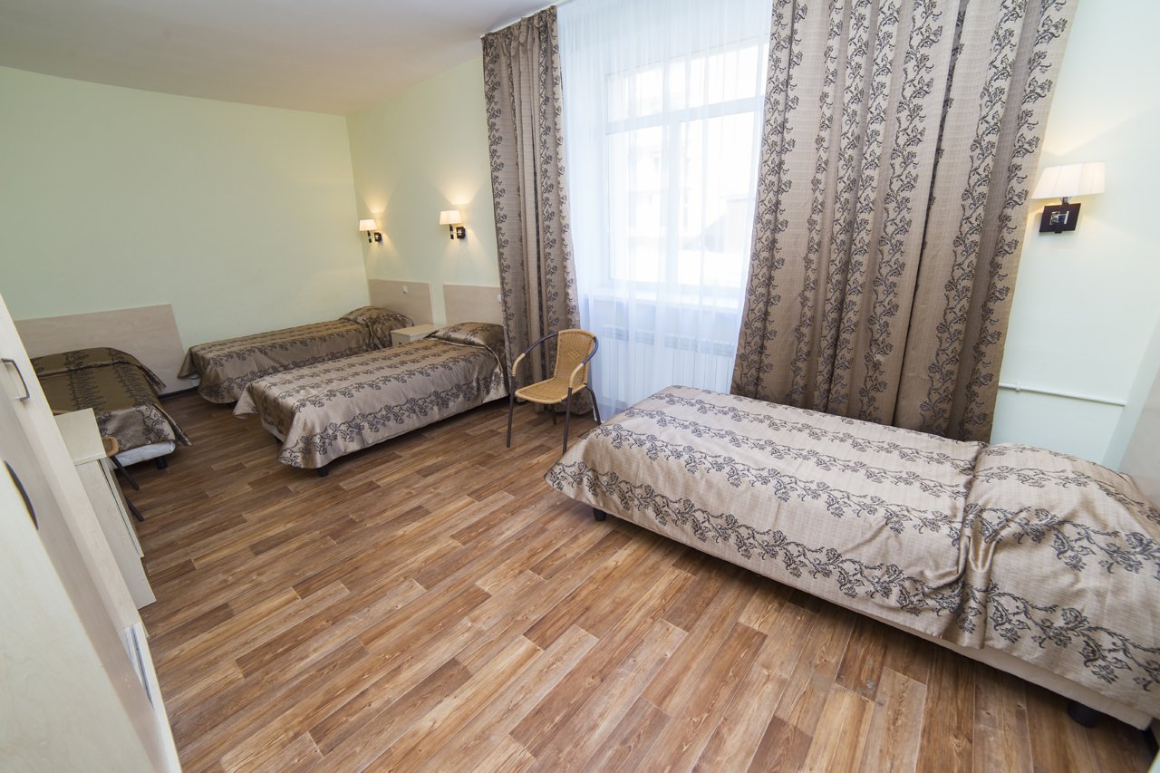 Площадь номера - 24 кв.м кв.м. 1 осн. место. Мебель: вешалка, зеркало, кровати односпальные, прикроватные тумбочки, шкаф. Оборудование. Санузел: с душевой кабиной, туалетные принадлежности. Сервис: смена полотенец, смена постельного белья, уборка номера.